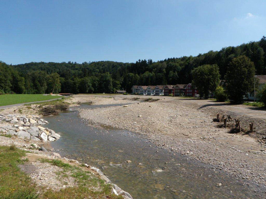 "All diese Renaturierungsmassnahmen garantieren nicht nur trockene Keller, wenn ein 100-jähriges Hochwasser eintreten sollte. Sie schützen auch bei Ereignissen, die statistisch nur alle 300 Jahre zu erwarten sind", beruhigt Projektleiter Pascal Lendi. "Damit erfüllt das Werk eine Anforderung des Kantons, wonach grosse geschlossene Siedlungen mit öffentlichen Bauten, Gewerbe- und Industriezonen gegen solche Hochwasser zu schützen sind."