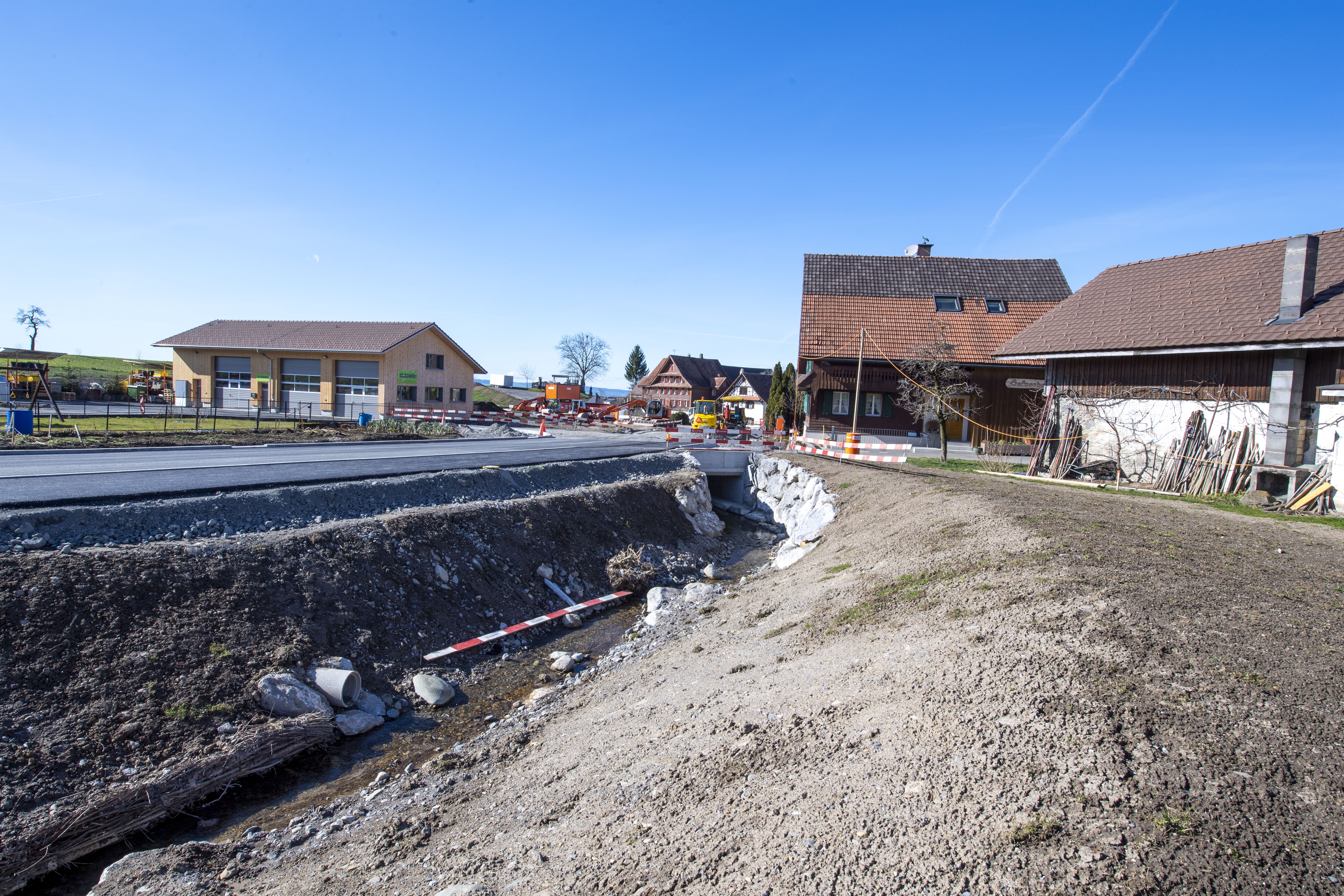 Seit Oktober 2019 werden die Bauarbeiten an der Hinterburgstrasse und des Hinterburgmülibachs in Neuheim für die Erstellung der Bachdurchlässe, des Bachgerinnes, für diverse Werkleitungen sowie Vorarbeiten für den Strassenausbau ausgeführt. Dies in einer ersten Phase bis Mitte April 2020 und unter Vollsperrung für den gesamten Verkehr zwischen der Edlibachstrasse und der Baarerstrasse.