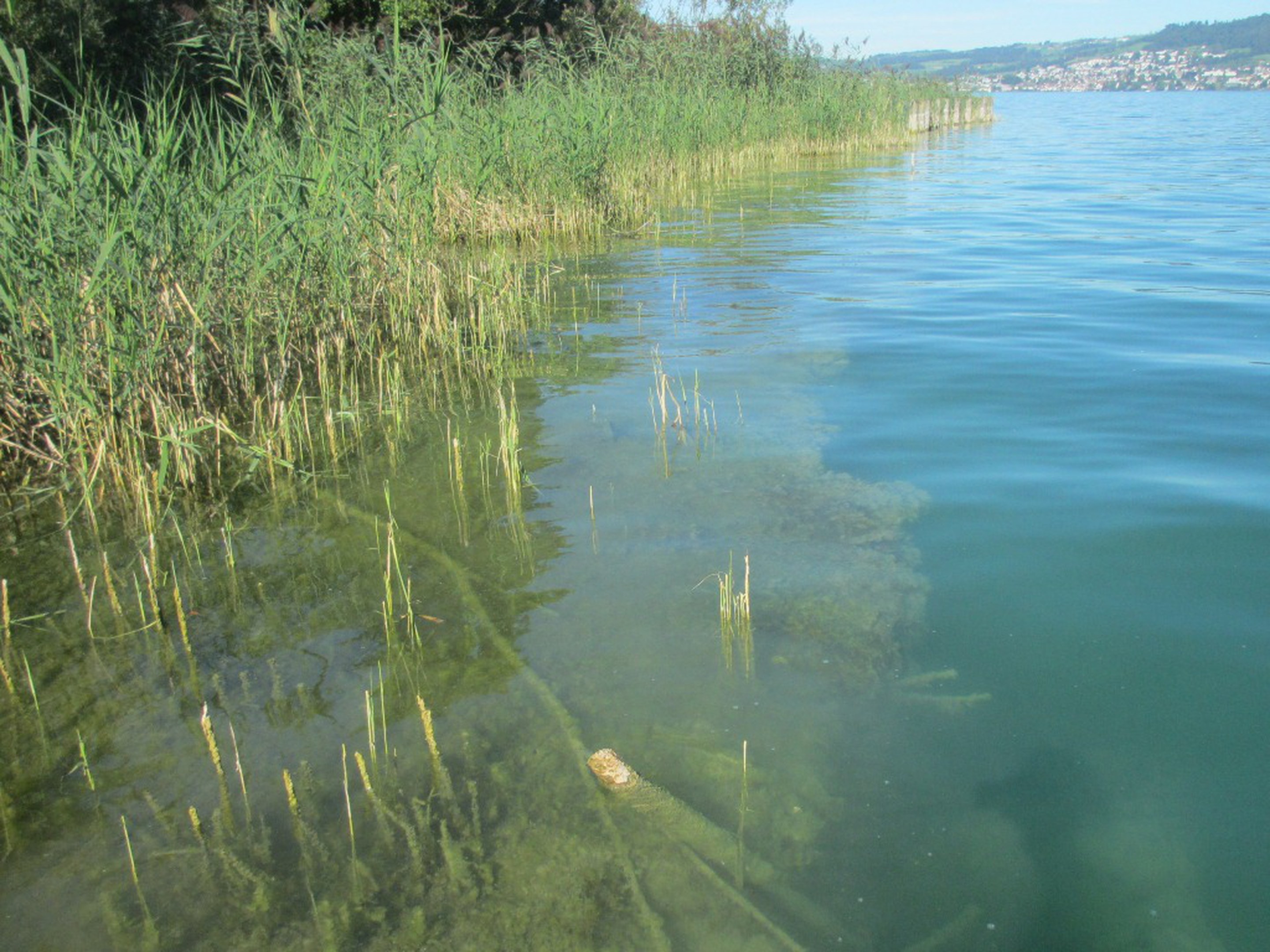 Der hohe Nährstoffgehalt des Zugersees führt zu einer grossen Algenproduktion (siehe "Nährstoffgeschichte Zugersee" bei den Downloads). Auf der Wasseroberfläche schwimmende Algenpakete knicken mit dem Wellenschlag austreibende Schilfhalme. Tote Algen sinken an den Seegrund, bilden am Seegrund faulenden Schlamm und schädigen die Seeufervegetation.