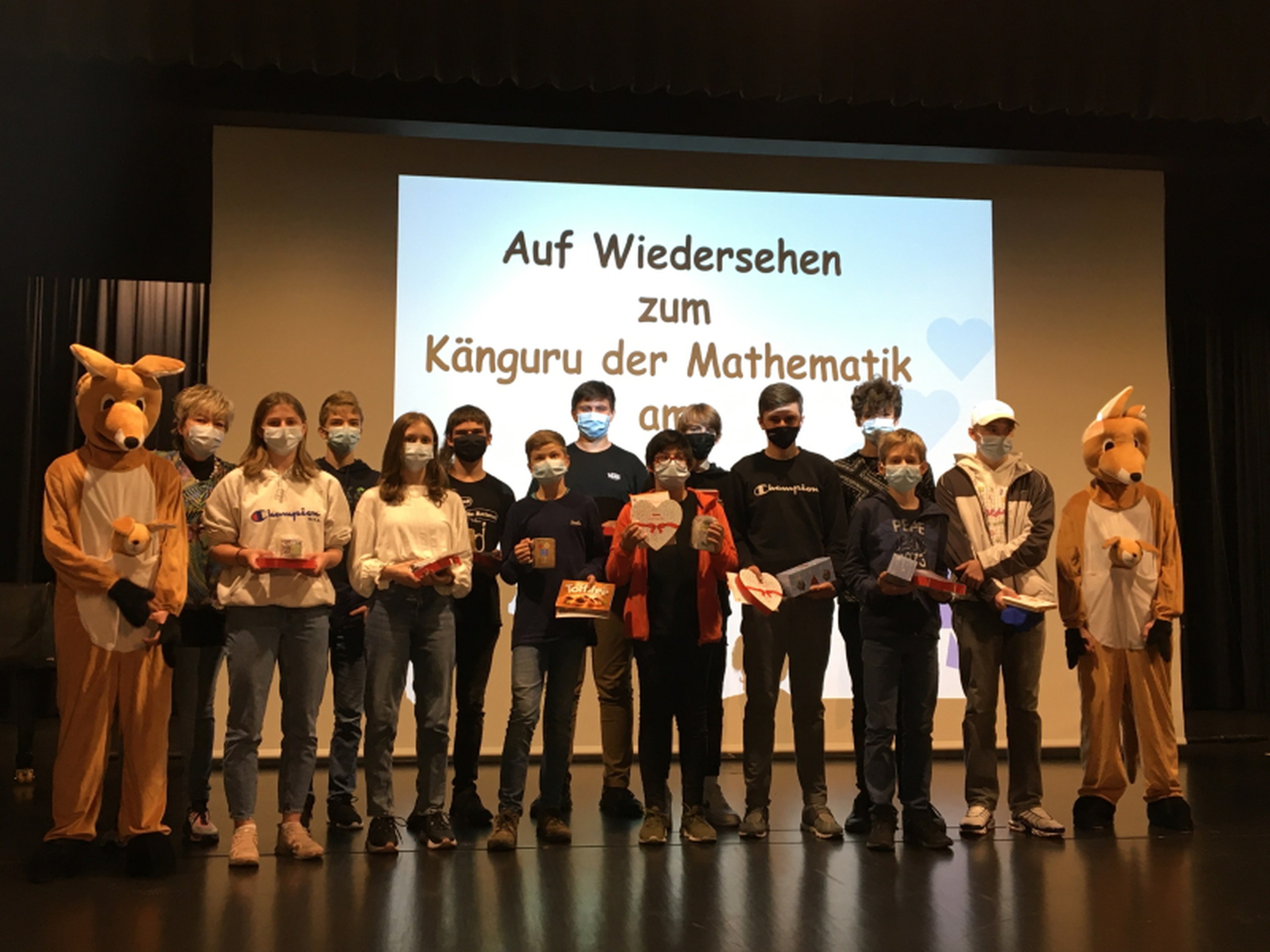 Prämiert wurden die jeweils drei ersten der entsprechenden Klassenstufe. Als attraktive Preise winkten spezielle Zauberwürfel (in Anlehnung an den Rubik-Würfel), Taschenmesser mit Känguru-Logo, Mathematik-Trinkbecher oder Mathematik-T-Shirts. Dieses Jahr wurden mit Hilfe eines Zufallsgenerators acht weitere Gewinner*innen bestimmt, unabhängig von der erreichten Punktezahl. Schlussendlich steht bei diesem Wettbewerb das Mitmachen im Fokus.