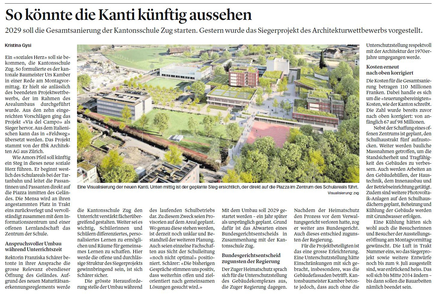 2029 soll die Gesamtsanierung der Kantonsschule Zug starten.