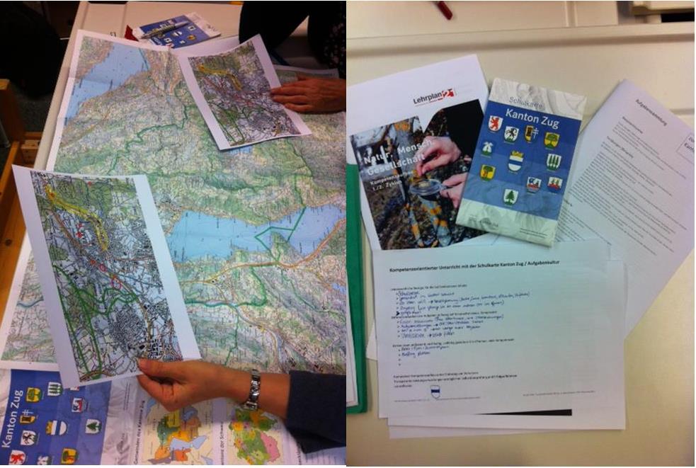 Die neue Zuger Schulkarte wird seit August 2017 in der Mittelstufe 1 genutzt. Die Fachgruppe NMG lud alle Lehrpersonen der Mittelstufe 1 ein, um die Materialien auf der DVD zur Zuger Schulkarte kennen zu lernen. Ziel war es, den Lehrpersonen die Materialien und Aufgabenstellungen bekannt zu machen und einen Bezug zu den Kompetenzen NMG herzustellen. Dani Mülli und Marcel Waller gestalteten diesen Informationsabend. 25 interessierte Lehrpersonen meldeten sich für diese Einführung an. Die kompetenzfördernden Aufgabenstellungen und das Bildmaterial unterstützen die Mittelstufe 1 Lehrpersonen in der Umsetzung des kompetenzfördernden NMG Unterrichts. Darüber hinaus befassten sich die Lehrpersonen auch noch mit Differenzierungsmöglichkeiten zu den Aufgaben.