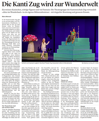 KantiTheater der Kantonsschule Zug verwandelt "Alice im Wunderland" in ein eigenes Bühnenabenteuer