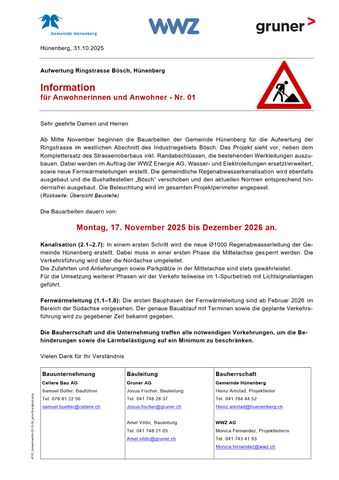 Information für Anwohnerinnen und Anwohner - Nr. 01
