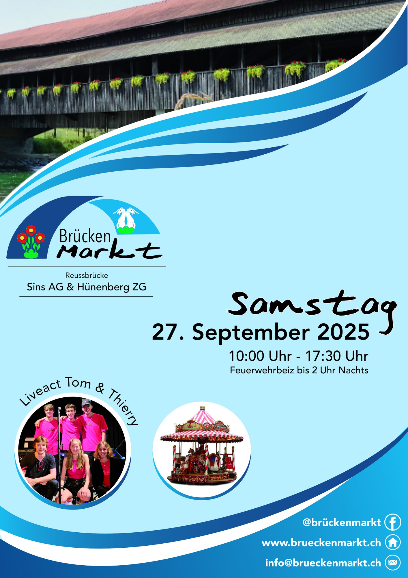 - Der handwerkliche Markt wird am letzten Samstag im September beidseits und auf der Holzbrücke über die Reuss veranstaltet.