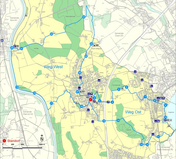 An 27 Stationen werden wichtige Hünenberger Themen aus Geschichte, Gewerbe, Landwirtschaft, Leben und Architektur beschrieben, sodass der vergnügliche Spaziergang mit der ganzen Familie auch zum lehrreichen Ausflug werden kann.