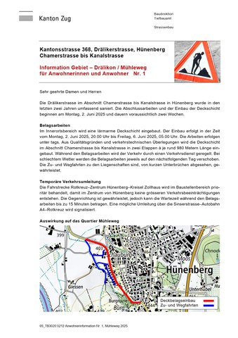 Kantonsstrasse 368, Drälikerstrasse, Hünenberg Chamerstrasse bis Kanalstrasse, Nr. 1