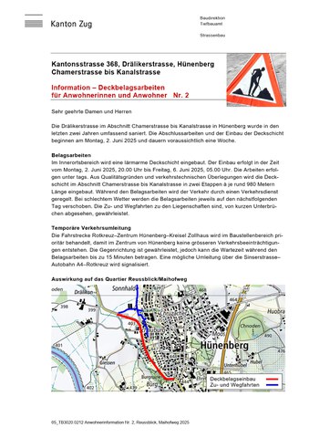 Kantonsstrasse 368, Drälikerstrasse, Hünenberg Chamerstrasse bis Kanalstrasse, Nr. 2