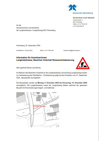 Information für Anwohner/innen Langholzstrasse