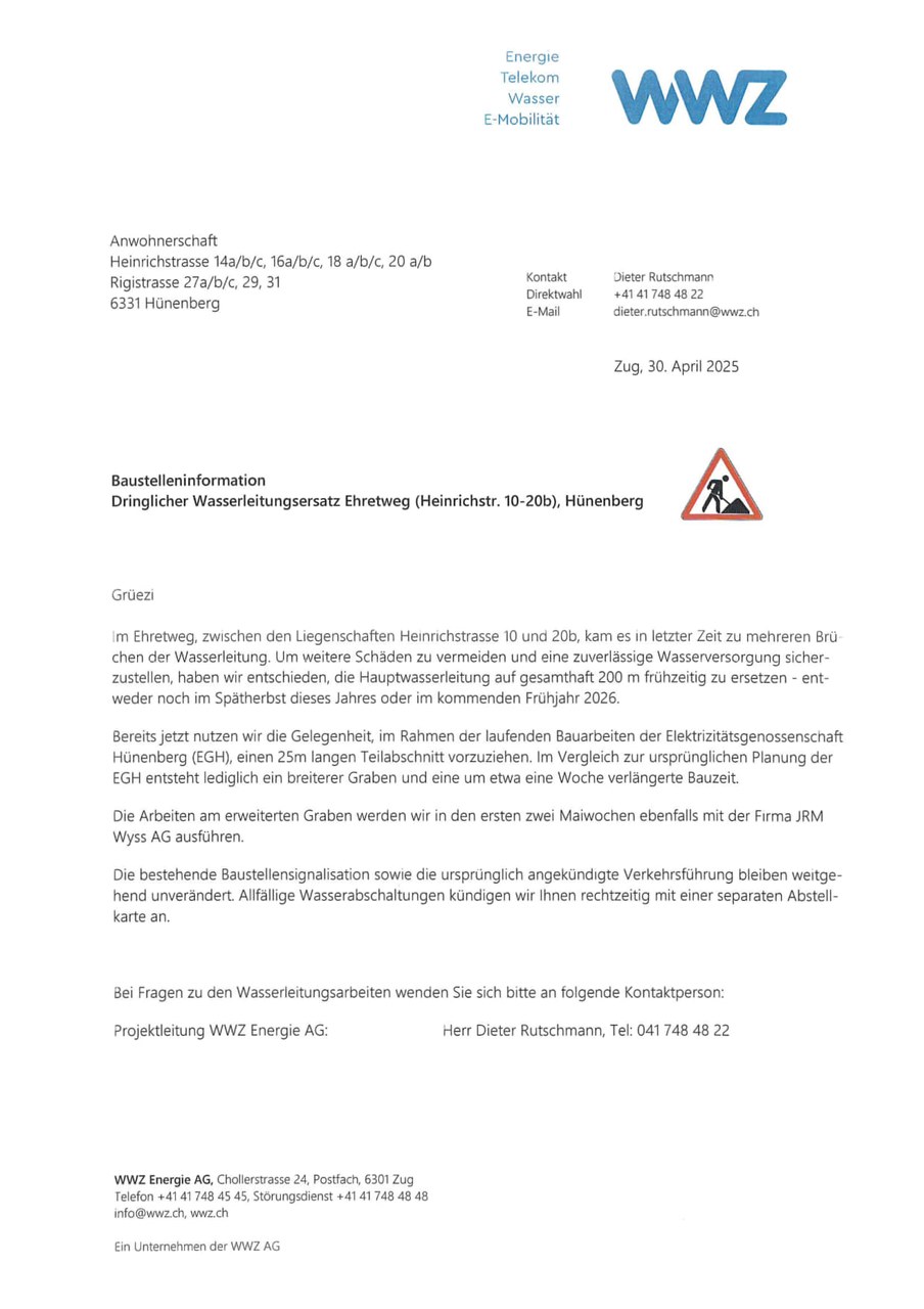 02.05.2025Wasserleitungsersatz Ehretweg2. Mai 2025https://publisher-zgch-prod.webcloud7.ch/izug/platform/behoerden/gemeinden/hunenberg/de/verwaltung/sicherheit-und-umwelt/strassen_tiefbau/aktuelle-projekte-1/aktuell/wasserleitungsersatz-ehretweghttps://publisher-zgch-prod.webcloud7.ch/izug/platform/logo.png