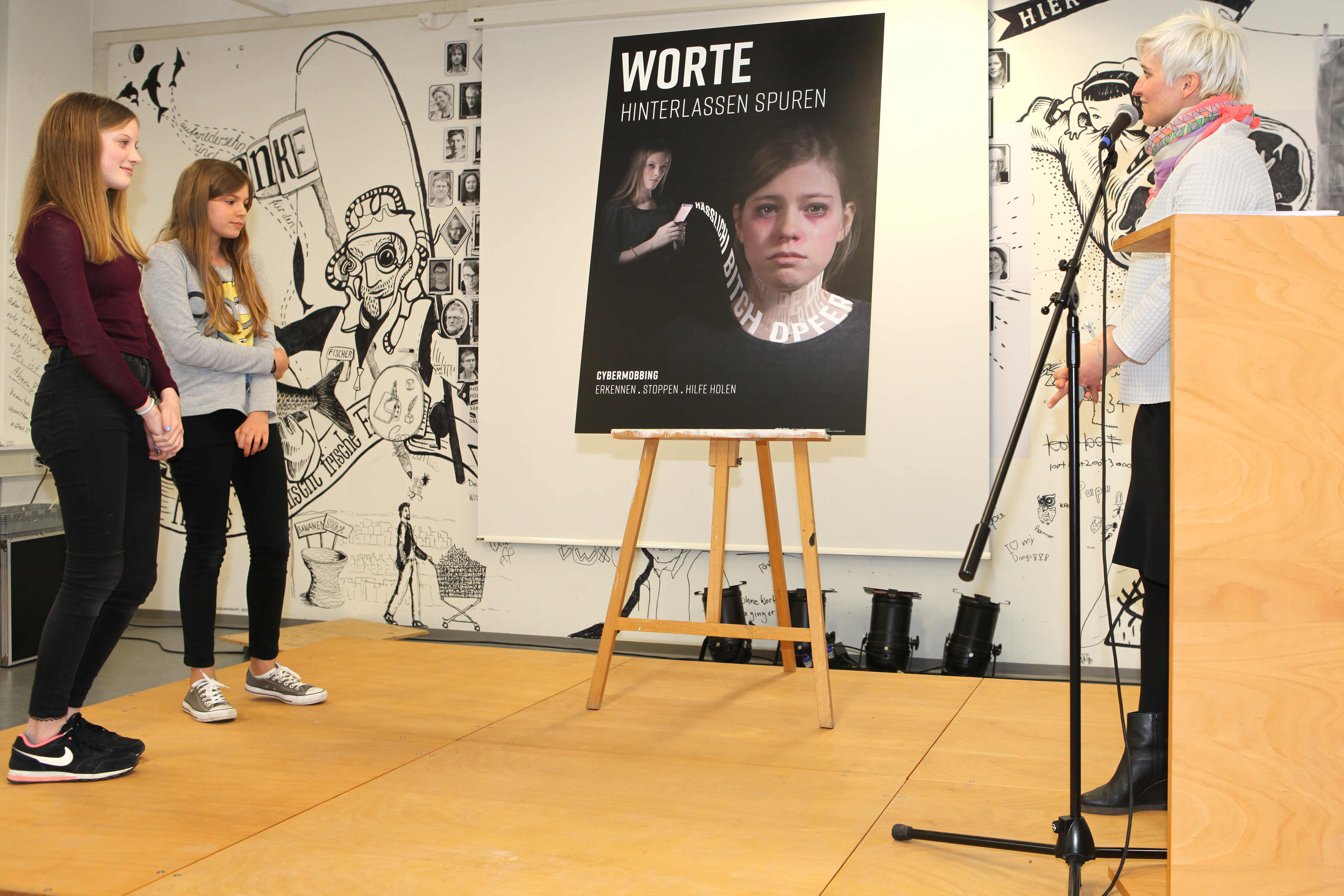 136 Arbeiten wurden im Rahmen des «freelance contest 2017» zum Thema Cybermobbing eingereicht. Die Arbeit der zwei Steinhauser Schülerinnen Chanel Weiss und Tabea Seitz, gestalterisch umgesetzt von der angehenden Grafikerin Alena Huber, überzeugte die Fachjury, welche das Plakat mit dem dritten Platz auszeichnete.