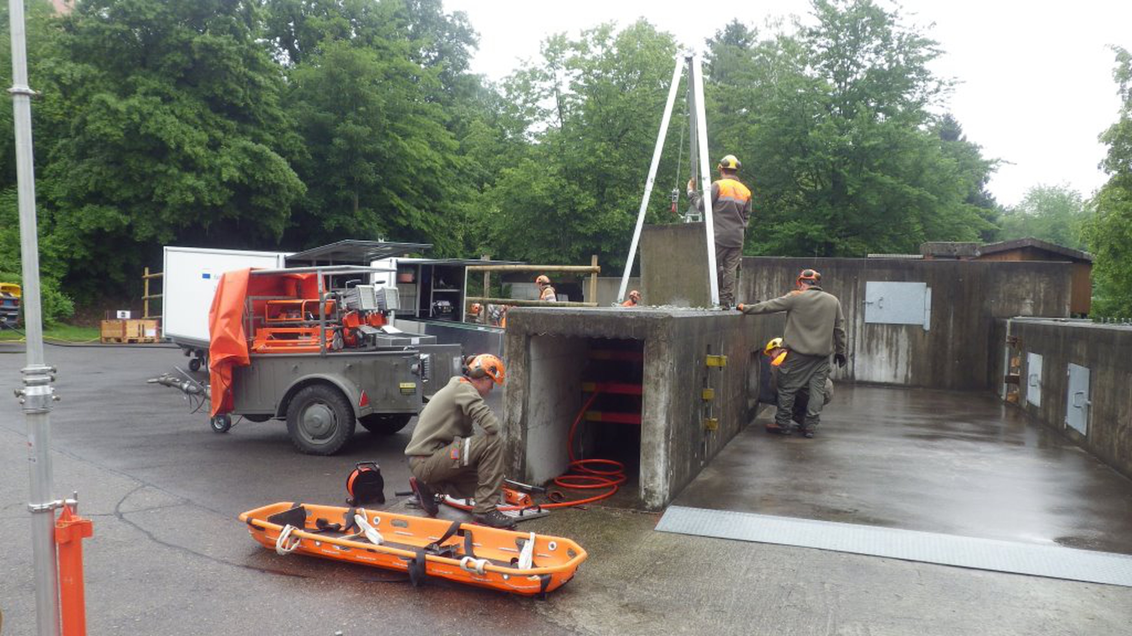 In Schulungssequenzen und praktischen Übungen setzten sich die angehenden Gruppenführer mit verschiedenen Einsatzmitteln auseinander. So standen für die Ortung, Versorgung und Bergung von verschütten Personen drei leistungsstarke Trümmerrettungsanhänger zur Verfügung. Dank dem integrierten Rettungsbrett konnte geübt werden, wie geborgene Personen schnell und patientenschonend direkt dem Rettungsdienst zur erweiterten medizinischen Betreuung übergeben werden können. Für einen 24-Stunden-Einsatz lernten die zukünftigen Gruppenführer neben den Pionieranhängern grosse und effiziente Beleuchtungsmittel aus den Beleuchtungsanhängern einzusetzen.