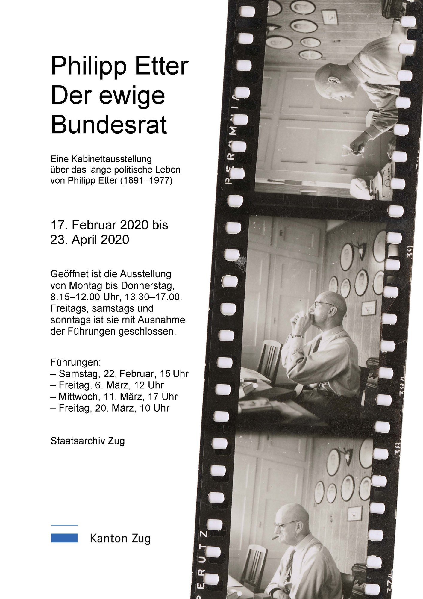 Ausstellung im Staatsarchiv Zug über den ersten Zuger Bundesrat Philipp Etter